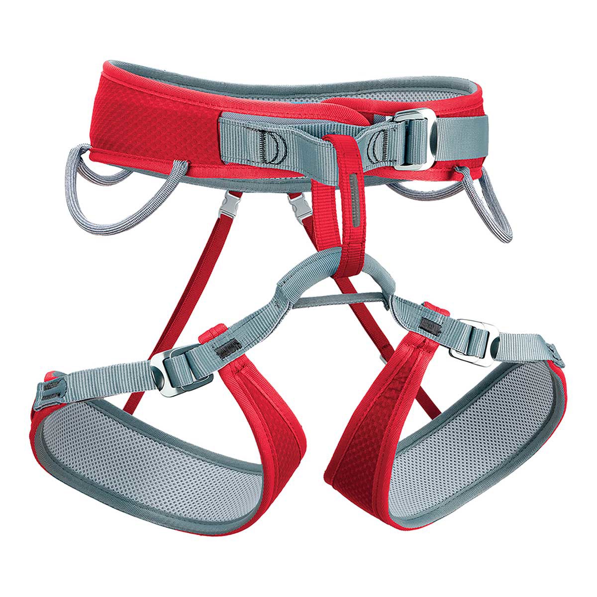 Arnés de escalada deportiva para mujer, totalmente ajustable y cómodo. Hebillas rápidas, perneras ajustables y 4 anillas portamaterial. Ideal para escalada deportiva.