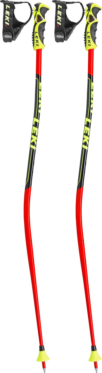 Bastones ergonómicos y ligeros de la marca Leki para esquí de competición, diseñados para ofrecer la aerodinámica perfecta mejorando la postura de velocidad.