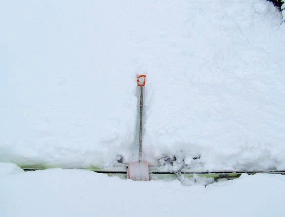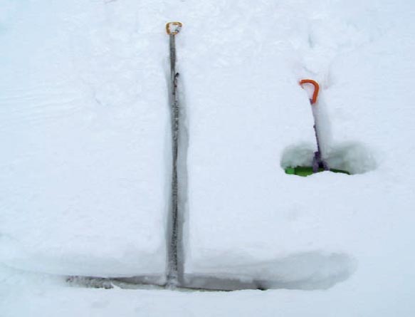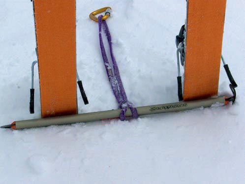 abandonar un mosquetón. La estaca penetra mejor en nieves duras si le afilamos la punta. En la foto 2 a la derecha.