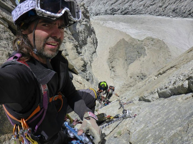 Alex Txikon, David Palmada y Ekaitz Maiz salen hoy hacia el campo 2, en su ascensión a la Gran Torre del Trango por la vía Bushido. Ayer David Palmada "Pelut", escaló el primer largo de A3 "por unas lajillas curiosas", fue un día largo y de trabajo muy duro.