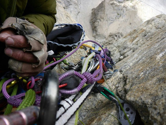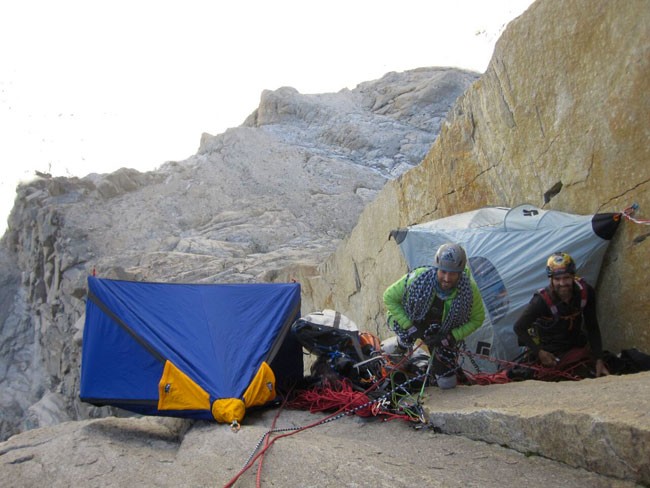 Ayer David Palmada, escaló el primer largo de A3 "por unas lajillas curiosas", fue un día muy largo y de trabajo muy duro e intenso y por un terreno muy descompuesto.