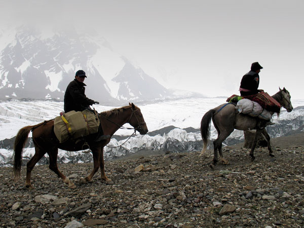 El pueblo kirguiz es tradicionalmente nómada y sus caballos son algo esencial para trasladarse por las vastas extensiones de Asia Central. Aunque nosotros dejamos de ser nómadas hace ya mucho tiempo, algo de aquel espíritu viajero todavía nos induce a conocer otros lugares y otras culturas. Así pusimos nuestra mirada en esta región que además nos permitía combinar viaje y alpinismo. Y enseguida nos sedujo la imagen de la cara norte del Pico Lenin: 7134 m de altitud, 3000 m de desnivel esquiable y hasta 50º de inclinación. Teníamos que esquiarla.
