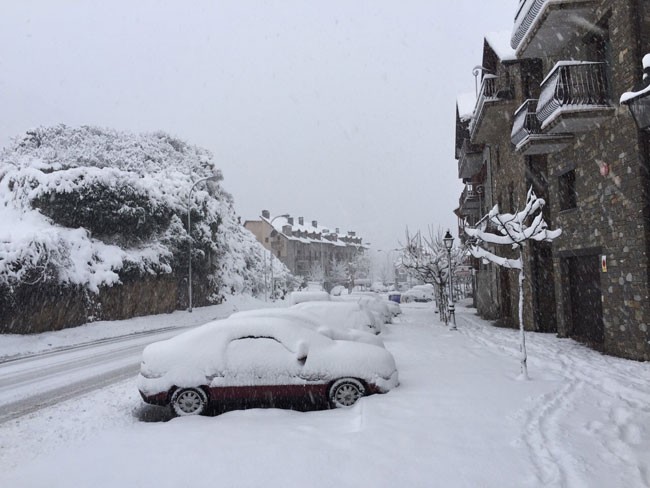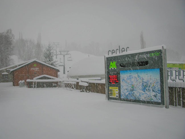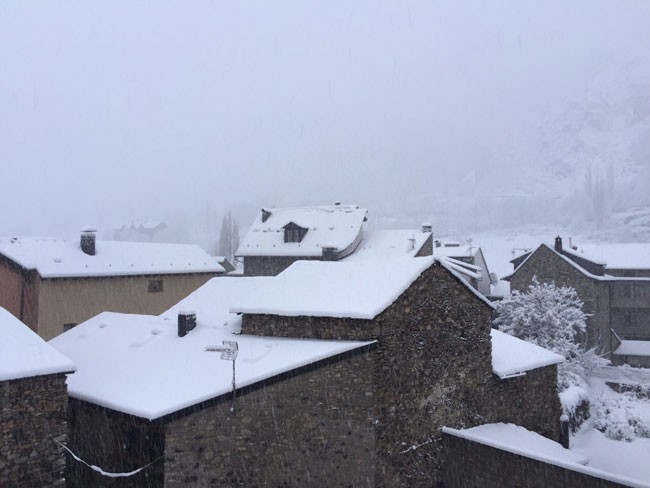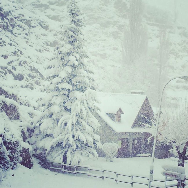 Desde ayer por la tarde-noche, un fuerte frente ha azotado buena parte del Pirineo occidental y central, con un frío muy intenso y una ventisca importante. La nieve ha llegado a todas las cotas. Os dejamos con algunas imágenes de esta mañana en el valle de Benasque. Como puede verse, en Llanos y el Molino de Cerler las acumulaciones han sido buenas: 30 centímetros, de momento, en el Molino, y mayor espesor en Llanos del Hospital.