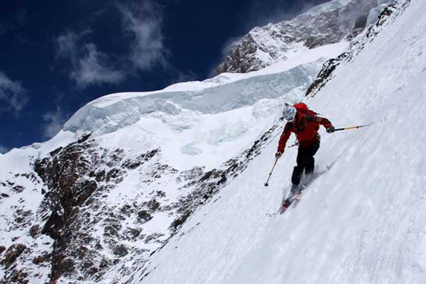 2007- Dhaulagiri (8.167 m), Nepal. En este pico consiguió descender hasta los 4.700 metros desde los 8.000m sin quitarse las tablas.