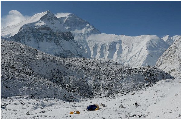 Poco a poco llegaron al campo base chino, y desde allí, con yaks, han llegado a su campo base avanzado, que podemos ver en las fotografías. Al fondo, esperándoles, puede verse cruzando la montaña el gran corredor, el Supercolouir al Everest. De momento, han permanecido a más de cincomil metros durante unos días, con algún acercamiento a la base del corredor que además de servirles como aclimatación, les permite ver las condiciones en las que se encuentra.