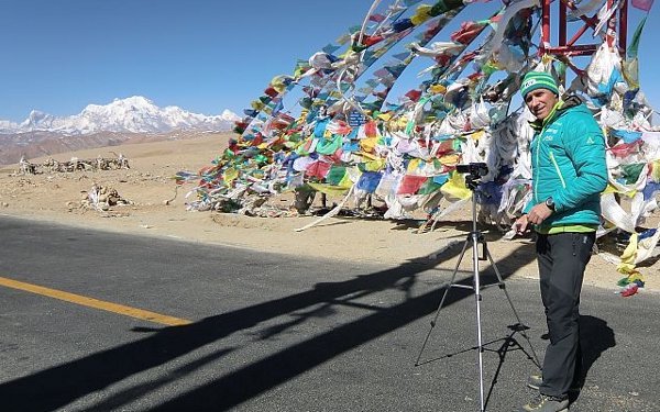 Gerlinde y Ralf envían su primer reporte tras su trekking de aproximación y la instalación de su campo base avanzado, a 5.500m de altura. Llegaron a Katmandú el día 2 de abril, y tras los trámites de rigor y la visita a Miss Hawley, se trasladaron el día 4 hasta la frontera tibetana. Emplearon 8 días en llegar al campo base del Everest, realizando pequeñas incursiones en las montañas cercanas a la carretera. Por cierto, que anuncian que ya es definitivamente carretera, tras ser asfaltada y señalizada, como puede verse en la foto de Ralf en el Lalung Leh, a 5.050, con el Shisha Pangma al fondo, un puerto que ahora luce un flamante asfaltado.