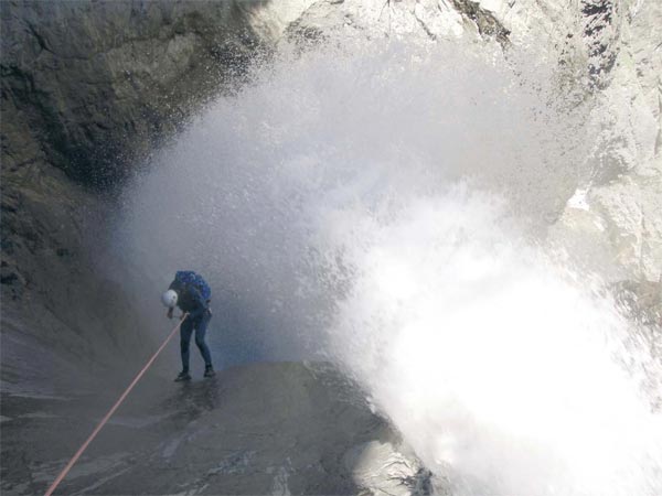 Descenso de la Oules de Fressinieres, un barranco de alta dificultad por su gran caudal, continuidad y compromiso, pues los escapes son contados