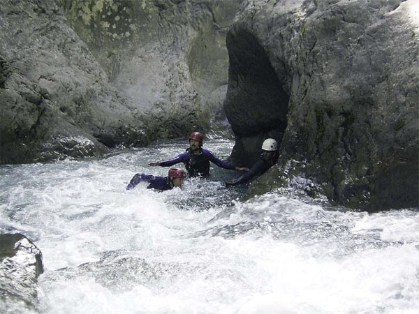 El descenso de un barranco en condiciones de aguas vivas, es decir,