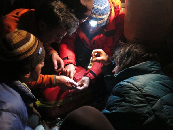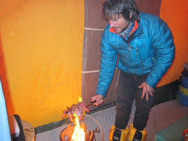 La verdad es que hoy el día ha sido muy muy frío. Aquí estamos poquitos y cada vez que veía a uno de nosotros fuera de alguna de las tiendas era corriendo para protegerse del frío y el viento. Y, como no, por la tarde, la pelea de cada día con el generador. Carlos y yo tenemos un par de placas solares que nos son prácticamente suficientes, pero estar enchufado... es otra cosa.