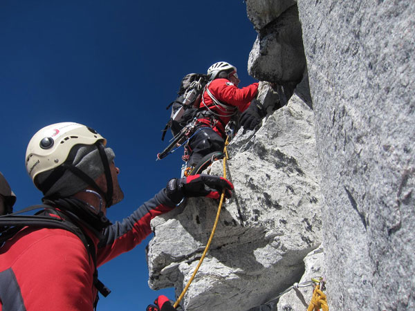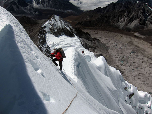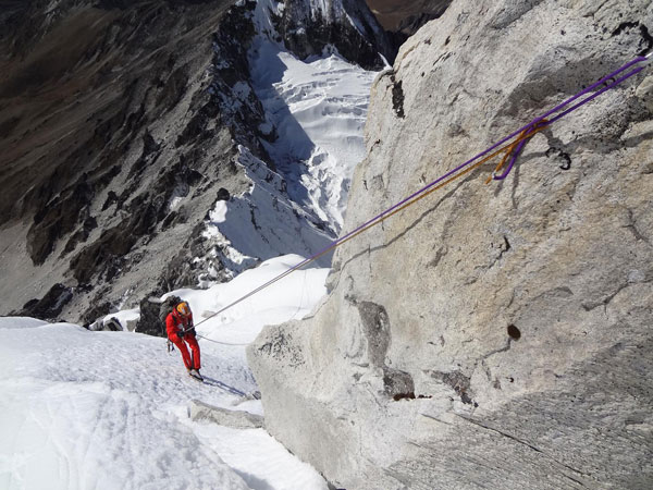 Tras examinar la gran muralla de 5km de largo y 2.500m de alto, parece ser que se van a decidir por intentar la británica en estilo alpino hasta la cumbre situada a 7.861m. Una vía larguísima, técnica y de mucho compromiso, especialmente si se intenta en alpino. Pero el resto de la muralla no ofrece mejores condiciones