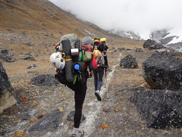 Se encuentran pasando la noche en un vivac. Mañana puede ser el día de cima en su intento alpino, sin oxígeno, al Everest por el corredor Horbein