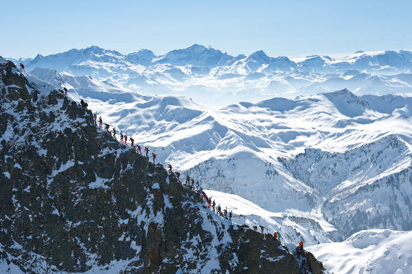 Los esquiadores-alpinistas por las aristas de la Pierra Menta