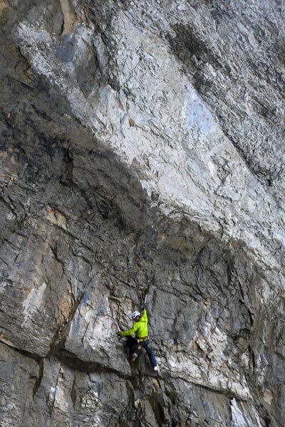 El gallego José Romay libera el primer largo de “Brutal Fang”, en Pineta, y propone M12+. Sin espuelas. No pudo encadenar los 3 largos de la vía, porque mientras probaba el techo que da el grado propuesto, la gran columna de hielo que ocupaba los dos siguientes largos se derrumbó…pero ahí queda la mejor actividad en mixto que se puede realizar en este momento en España