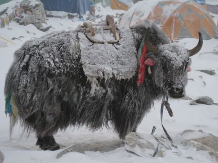En el Cho Oyu, Raquel Pérez y Willy Barbier informan de algo similar. Tras varios días de espera en el campo base, el domingo 30 se anunció una ventana de buen tiempo, así que decidieron tirar para arriba, junto con alguna otra expedición. Enseguida empezaron a notar los efectos del frío y el viento, y según cuentan, “la llegada al Campo 1 fue desoladora, tiendas sacudidas por el viento, algunas habían salido volando, otras habían sido aplastadas por la nieve, otras estaba reventadas y llenas de agua por dentro, como fue el caso de dos de las tiendas de nuestros compañeros, una empapada y otra reventada. Eva, con el saco empapado, Alberto y Bittor sin tienda donde dormir. Cenamos todos juntos en nuestra tienda una Trango World y la de los Javieres que fueron las únicas que soportaron el tiempo. Llegada la noche buscaron alguna tienda libre donde dormir”. A la mañana siguiente, ante el empeoramiento del tiempo, todos tuvieron que dar media vuelta y bajarse. En el grupo, con Aragón Aventura, de Jaca, van el aragonés Javier Camacho (Mckinley en solitario, Elbrus invernal, Ferrari al Alpamayo), y el navarro Javier Arrobarren, también experimentado alpinista, autores de las fotos que acompañan esta noticia.