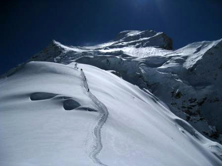 Hace 3 semanas informábamos del intento que Valery Babanov iba a realizar a la norte del Jannu en estilo alpino. A fecha de hoy, le ha nevado continuamente durante todos los días, así que ha instalado el CB, pero ni tan siquiera ha podido acercarse a la base de la pared.