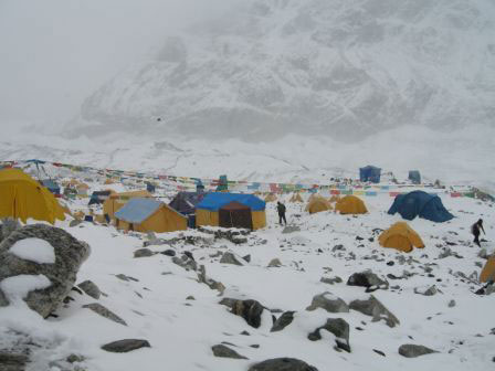 Nieve y más nieve en el campo base del Cho Oyu