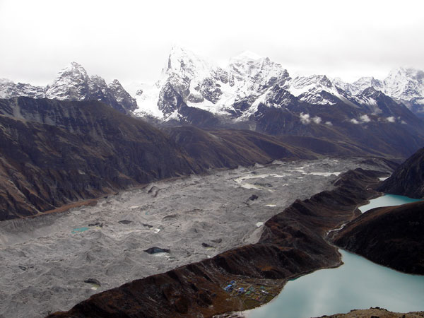 Valle de Gokyo. En primer término, uno de los nuevos lagos glaciares
