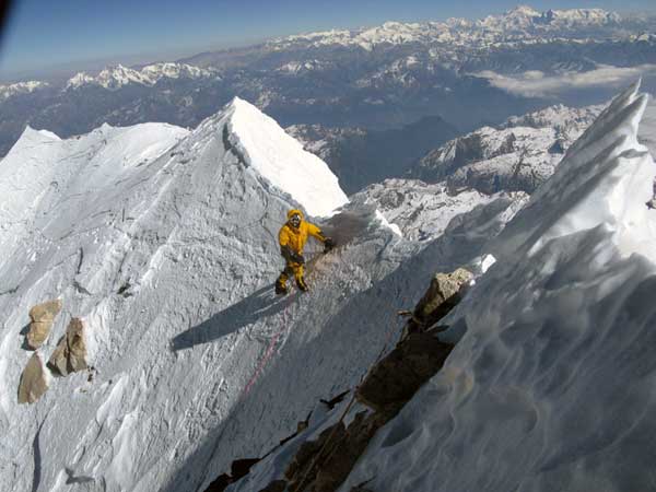 Acercándose a la verdadera cima del Makalu por la arista