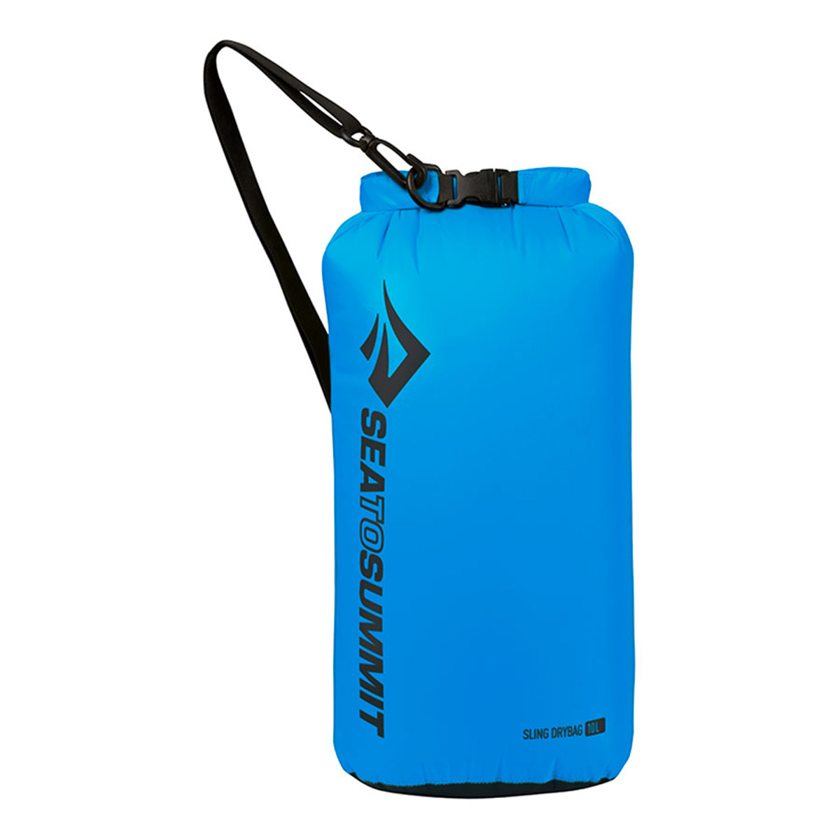 Bolsa estanca Sling Dry 10L de Sea to Summit, ideal para actividades acuáticas. Fabricada en Nylon 70D, con correa ajustable, interior blanco para mayor visibilidad y capacidad de 10 litros. Ligera y resistente al agua.