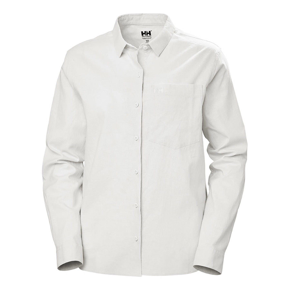 Camisa de manga larga para mujer, cómoda y versátil para uso diario. Fabricada con un 55% de cáñamo y un 45% de algodón orgánico. Diseño limpio con bolsillo en el pecho y botones personalizados Helly Hansen.