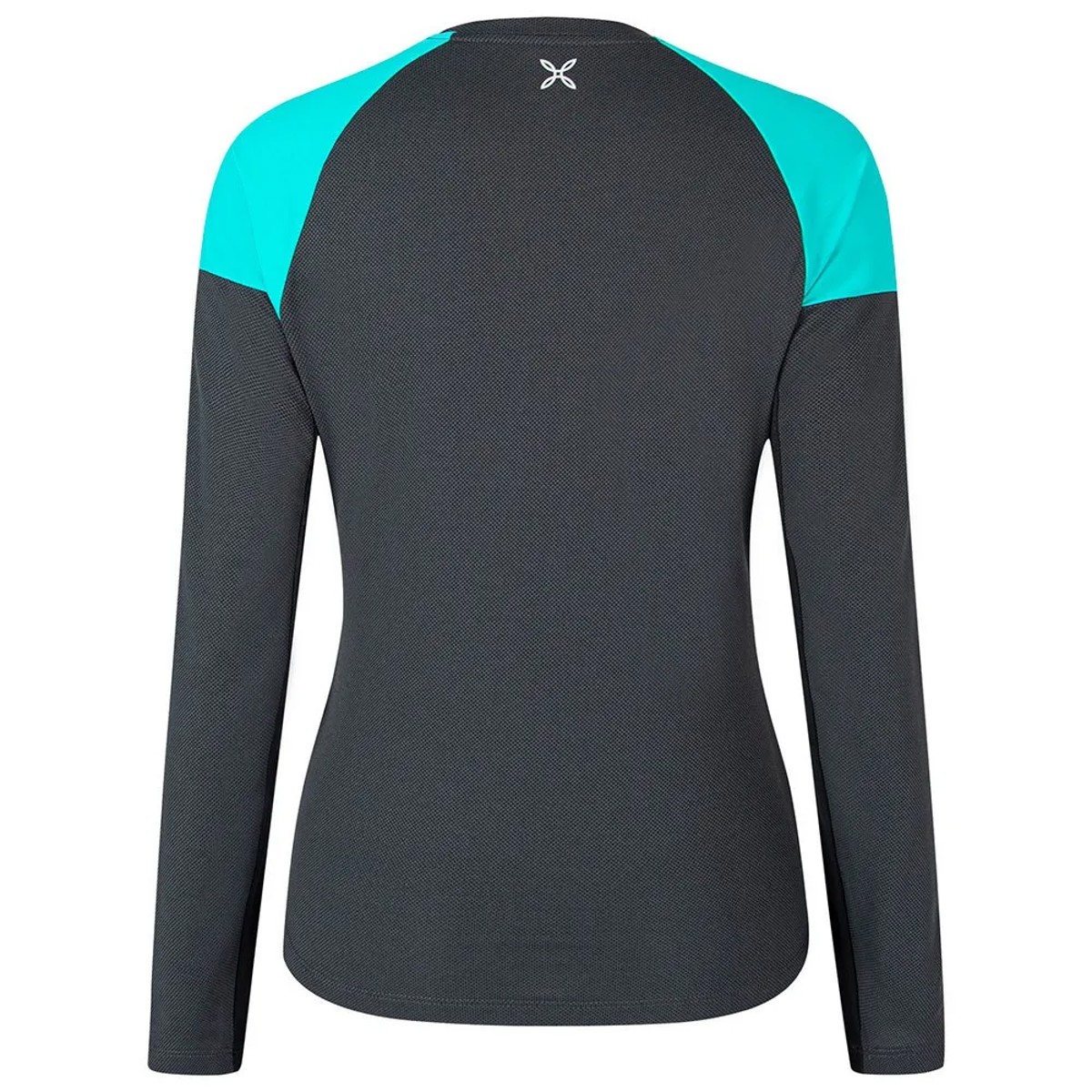 Camiseta técnica de manga larga para mujer, ideal como primera capa debajo de prendas impermeables. Perfecta para actividades al aire libre y de ocio.