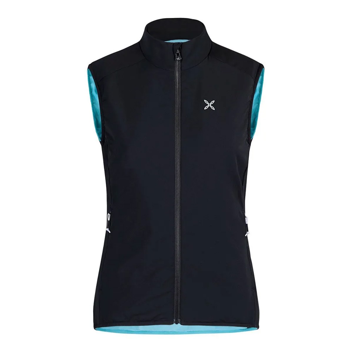 Chaleco acolchado para mujer, ideal para actividades aeróbicas de montaña. Fabricado con tejido de nylon elástico, tratamiento DWR, forro de poliéster y relleno Comfortemp®. Con bolsillos con cremallera y bajo elástico.