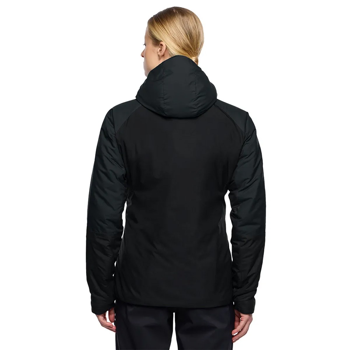 Chaqueta aislante para mujer, ideal para actividades de montaña en temperaturas bajas. Relleno PrimaLoft® para calidez incluso en humedad, tejido y forro 100% poliéster reciclado. Con capucha, bolsillos y puños elásticos para mayor confort.