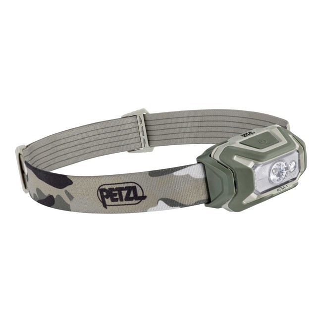 Čelovka Petzl ARIA 1 RGB, lehká, kompaktní a voděodolná, s 350 lumeny a širokým světelným paprskem. Ideální pro aktivity vyžadující diskrétnost, jako je lov, rybaření nebo pozorování, s červeným, zeleným a modrým osvětlením.