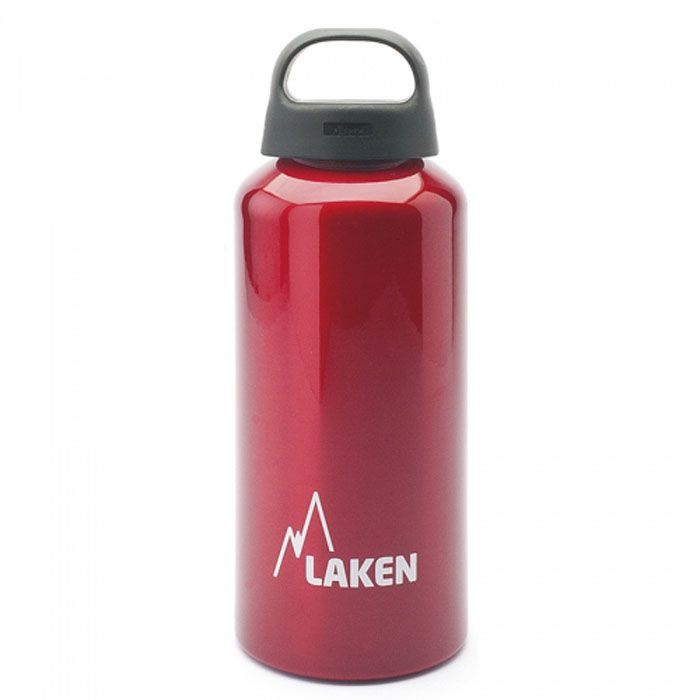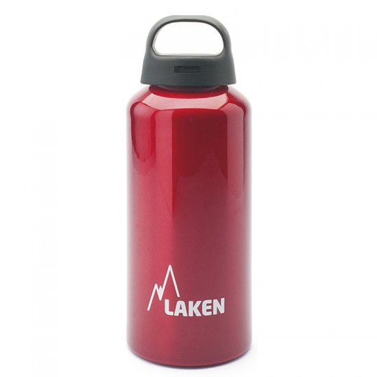 Hliníková láhev o objemu 600 ml od značky Laken s vnitřkem potaženým sanitární vitrizací, zvenčí lakovaným emailem.