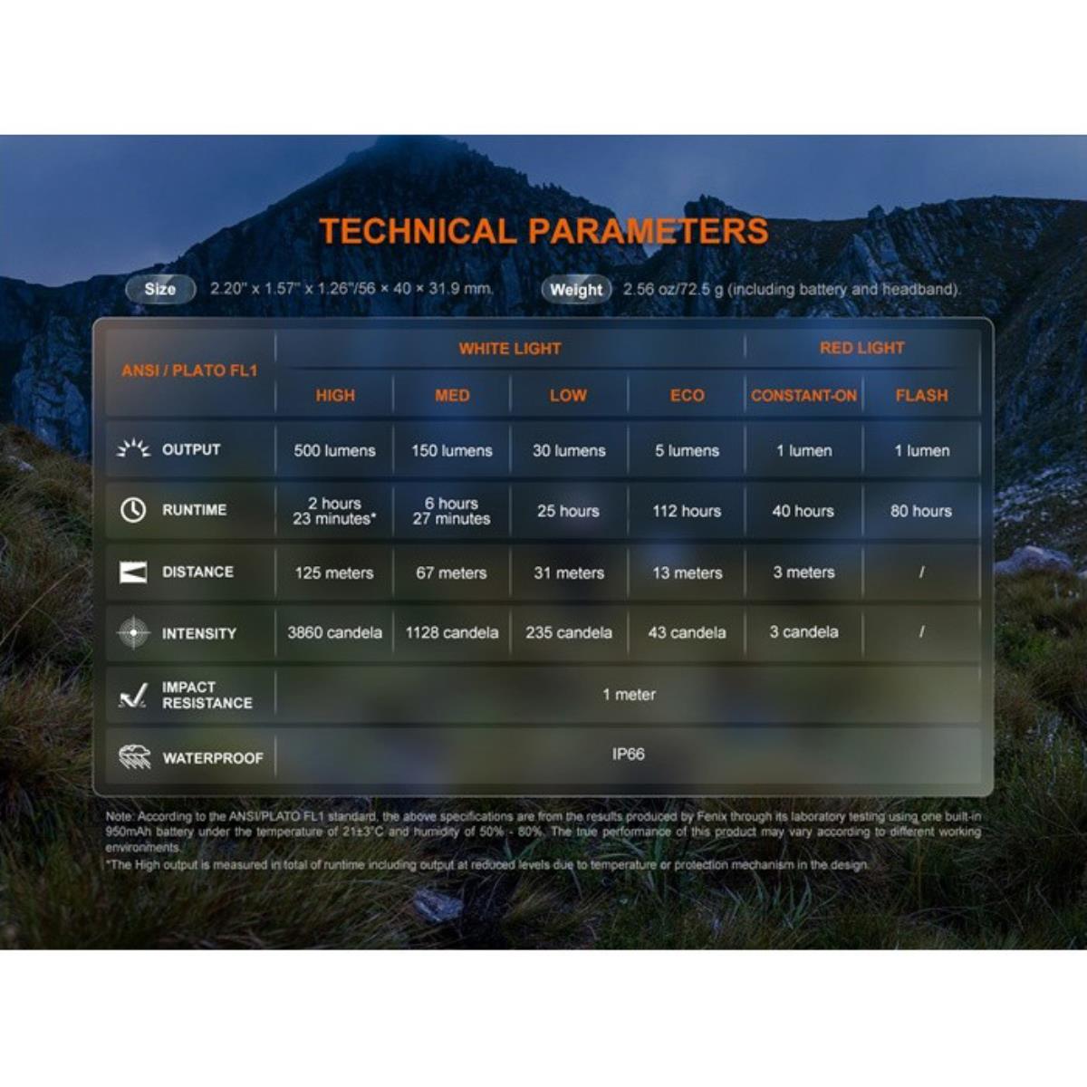 Angetrieben von einem eingebauten 950-mAh-Akku bietet diese Stirnlampe eine maximale Leistung von 500 Lumen und eine Leuchtweite von bis zu 125 Metern. Es verfügt über vier verschiedene Weißlichtausgänge sowie Rotlichtmodi. konstant und blinkend und bietet vielseitige Beleuchtung für verschiedene Situationen und Bedürfnisse im Freien.