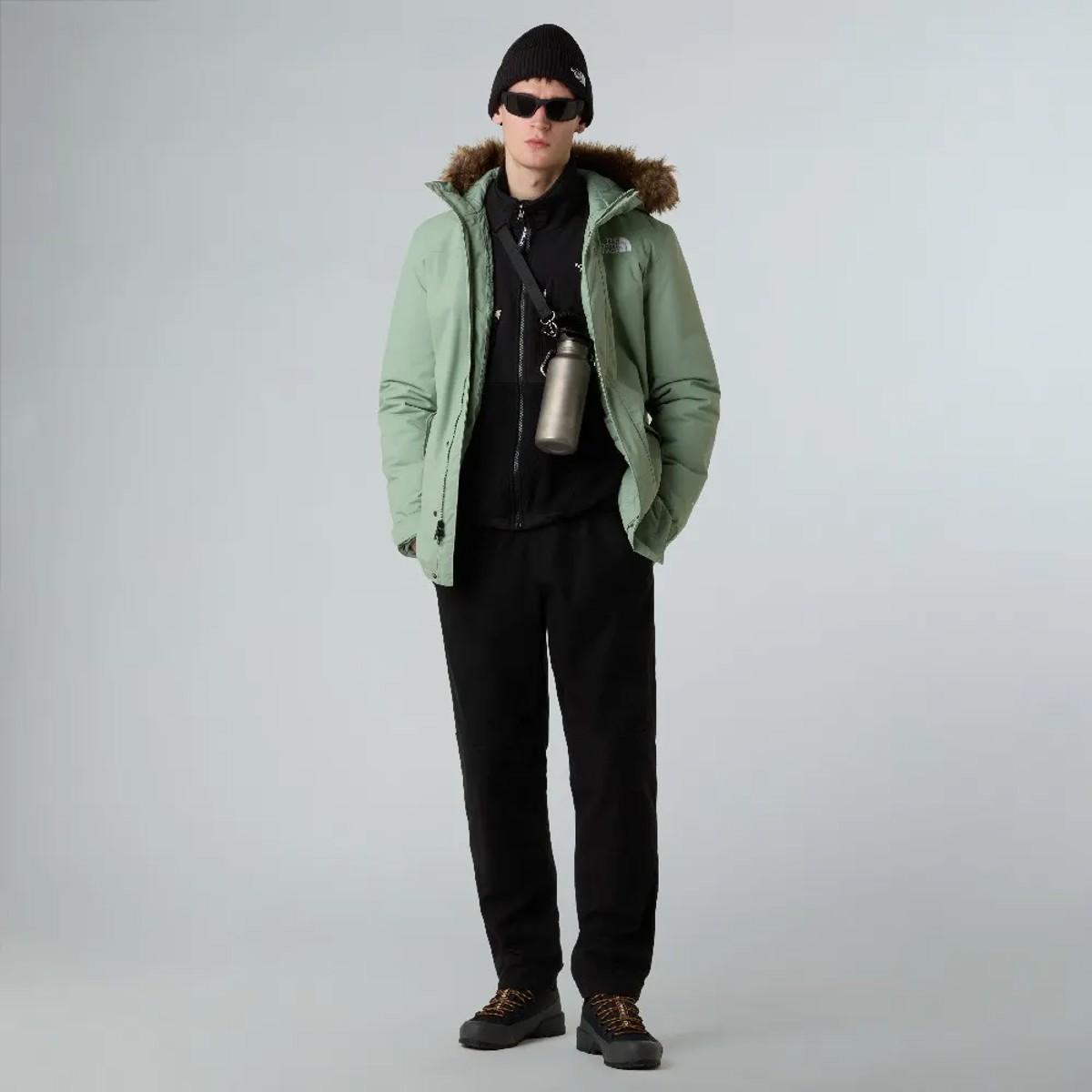 - Kapuze mit abnehmbarem Kunstfell.