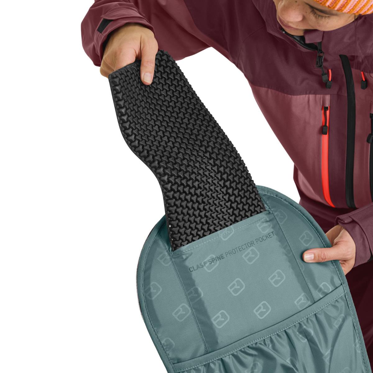 Der FREE RIDER 26 S passt sich beim Freeride in jedem Gelände perfekt an deinen Rücken an, wie eine zweite Haut. Das liegt vor allem am flachen, elastischen CLASP FLEX BELT, der für Kontrolle in jeder Situation und zuverlässigen Halt sorgt. Die weiche Rückenpolsterung schmiegt sich perfekt an den Rücken an, ohne die Wirbelsäulenbewegungen einzuschränken. Im Inneren kann die Rückseite des Rucksacks mit dem CLASP SPINE PROTECTOR ausgestattet werden. Dieser Wirbelsäulenschutz ist nach Motorradnormen zertifiziert und kann separat erworben werden. Lässt sich problemlos in eine separate Innentasche schieben. Dabei stehen sowohl deine Sicherheit als auch die Umwelt im Vordergrund: Dieser Freeride-Rucksack ist komplett frei von PFC und dank der Verwendung von recyceltem Polyester auch klimaneutral.