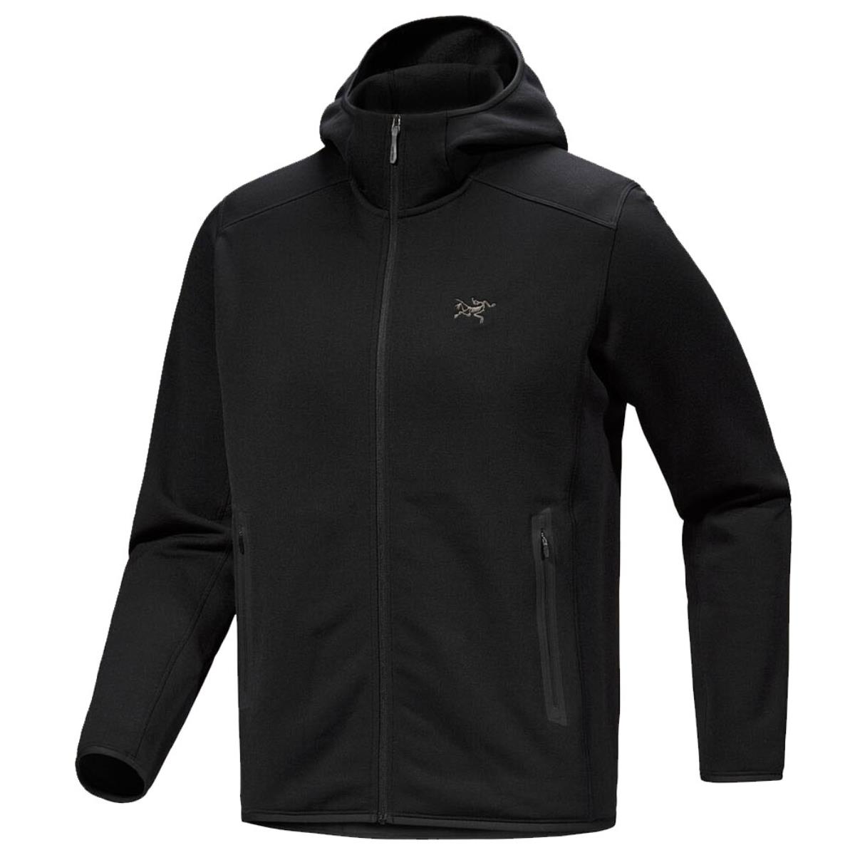 Warm and versatile stretch fleece hoodie worn as a midlayer or alone.