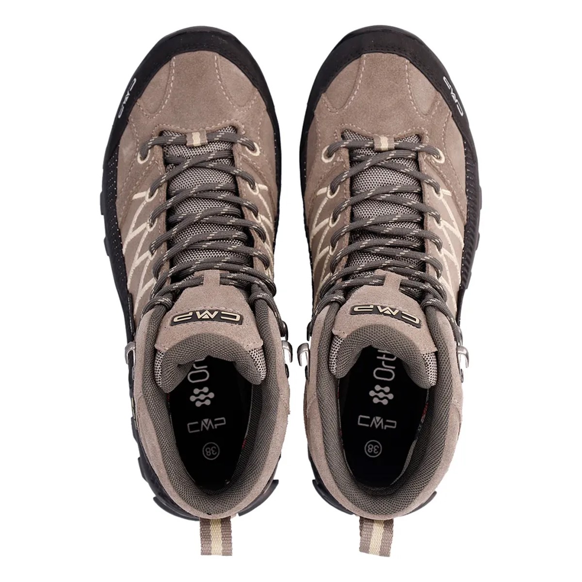 The RIGEL MID WMN SHOE WP are waterproof hiking boots from CMP with details in contrasting colors that give them a sporty and attractive look. Their structure and the compound of the CMP FullOn GRIP sole make them ideal for any surface, both wet and dry.