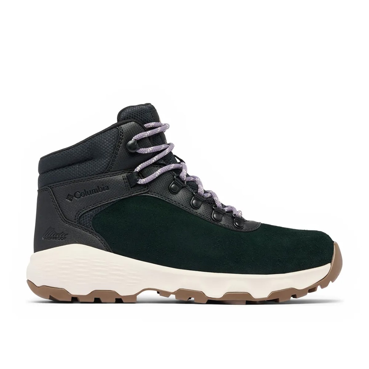 - Waterproof suede upper with metal hardware.