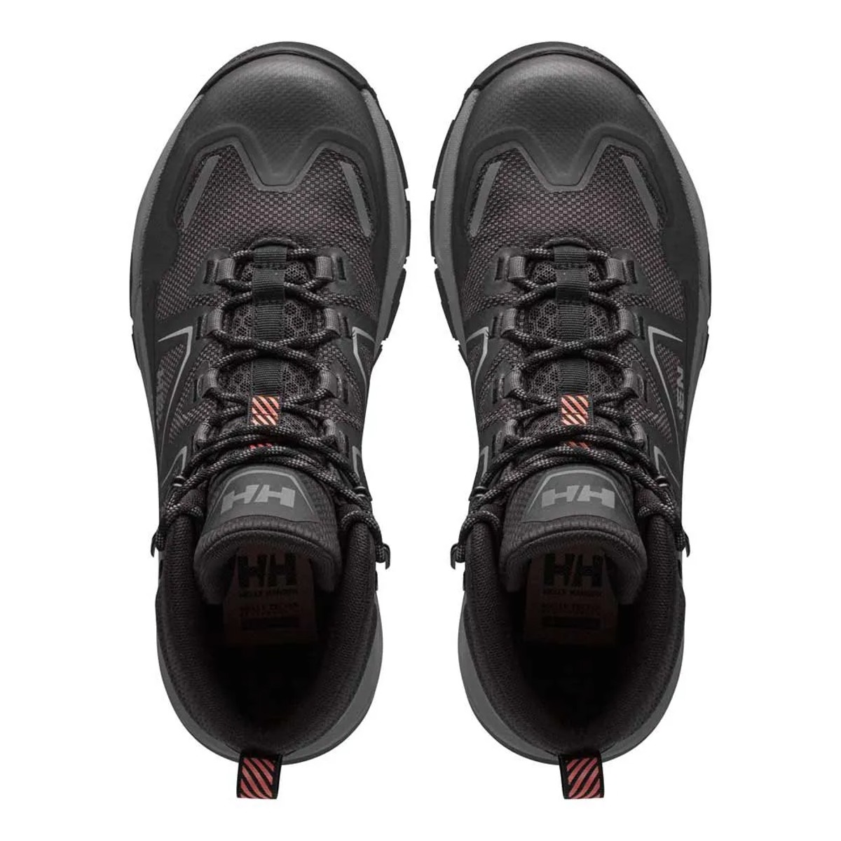 Lightweight, stable, and cushioned mid-cut hiking boot. HELLY TECH® waterproof/breathable membrane, Swift-Frame stabiliser, HH Pro-Guard protective toe cap and HH Surround-Grp multi-directional traction outsole.