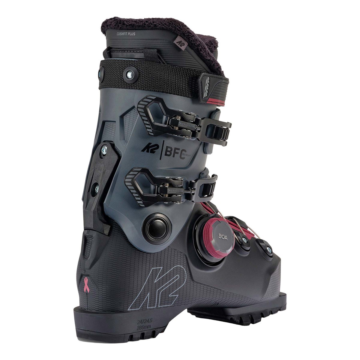 The K2 BFC 95 BOA women's ski boots offer a perfect balance between comfort and performance. With a flex of 95 and a wide last of 103 mm, they adapt to the needs of the most demanding skiers. The Cushfit lining provides exceptional comfort.