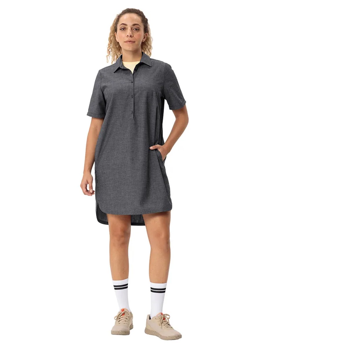 Light and summery shirt dress for women, ideal for everyday and leisure. Made with recycled polyester, hemp and elastane. Fresh, comfortable and easy to care for.