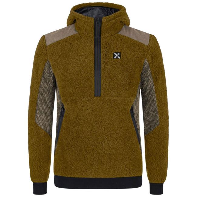 Nomad 2 Maglia hoodie, ideal for outdoor activities. Made with recycled materials, it offers comfort, breathability and thermal insulation. With hood, stretch fleece and zippered pockets.