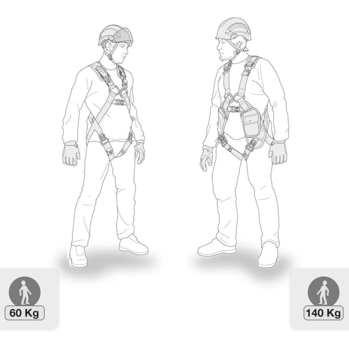 - Two possibilities of connectors at the tip of the lanyard: carabiner or MGO OPEN large opening connector. Within the framework of the CSA Z259.11-17 standard, the weight of the users must be between 75 and 140 kg.