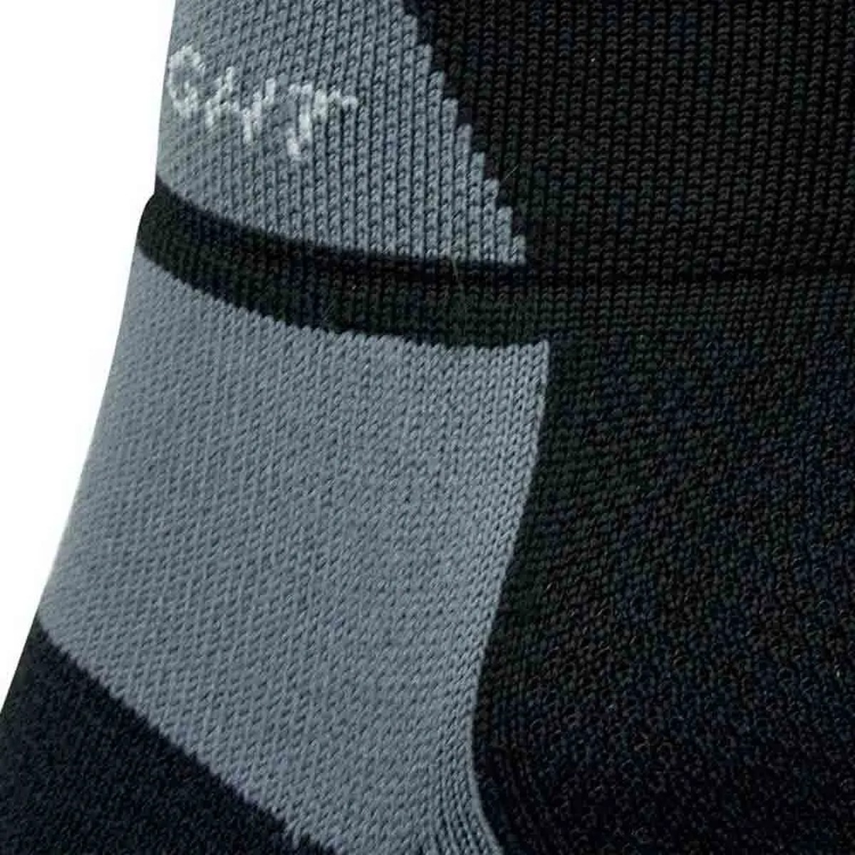 The COOLMAX Black/Grey trail running socks are designed to keep your feet cool and dry on the hottest days. Made from a Coolmax blend, these socks offer excellent breathability and moisture management.