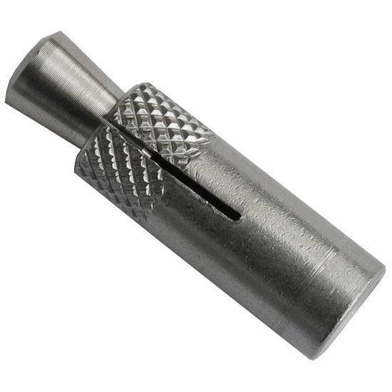 AISI 316L stainless steel plug from Raumer. The surface of the end part features a cross pattern which makes it very effective in resisting pull-out. The cone is also made of AISI 316L.