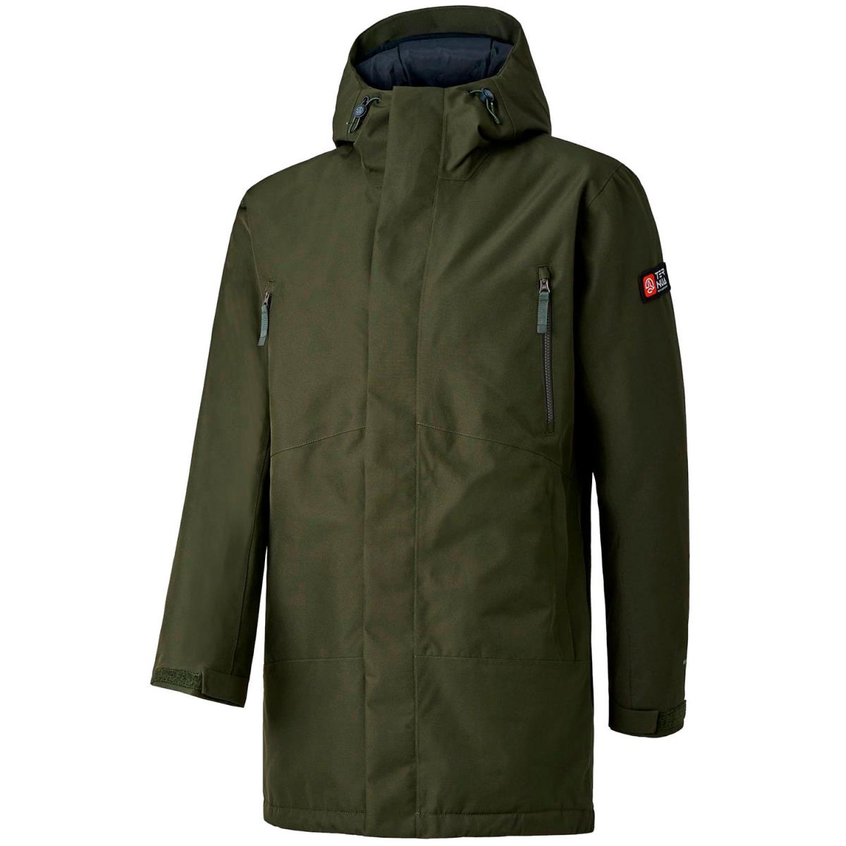 Waterproof and breathable parka with Shelltec (10k/10k) and 140g recycled Thermashell insulation. Multi-season and ergonomic, it has an adjustable hood, four exterior pockets and one interior pocket, velcro cuffs and heat-sealed seams. Bluesign® recycled and certified fabrics, PFC-free DWR finish.
