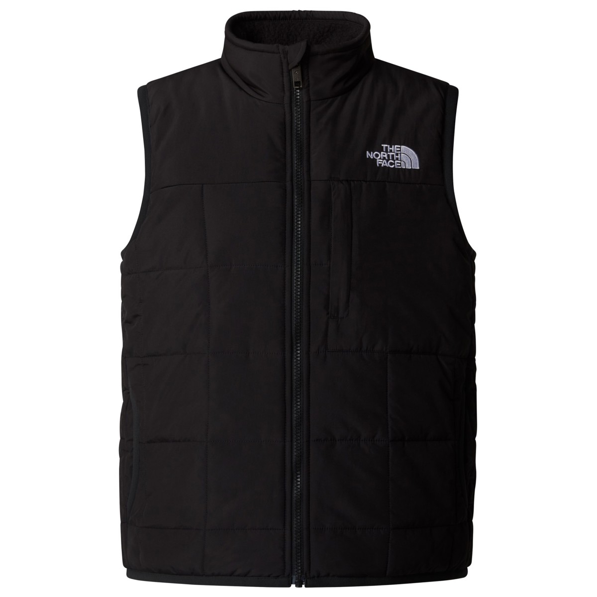Reversible vest for boy with synthetic insulation and water repellent outer fabric. One of its sides is fleece for greater warmth and comfort.