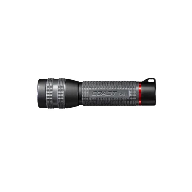 Kuvioitu kahva takaa turvallisen otteen, ja sen muotoilu sisältää liukumattomana alustana toimivan johdon, jonka avulla voit levätä sitä huoletta epätasaisilla pinnoilla. Coast Dual Power -tekniikan ansiosta voit käyttää sitä neljällä AAA-alkaliparistolla (mukana) tai ladattavalla Coast ZITHION-X™ ZX750 -akulla (myydään erikseen), mikä antaa sinulle joustavuutta ja taloudellisuutta.