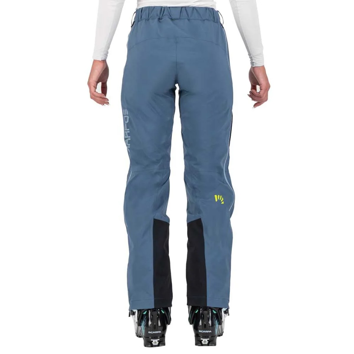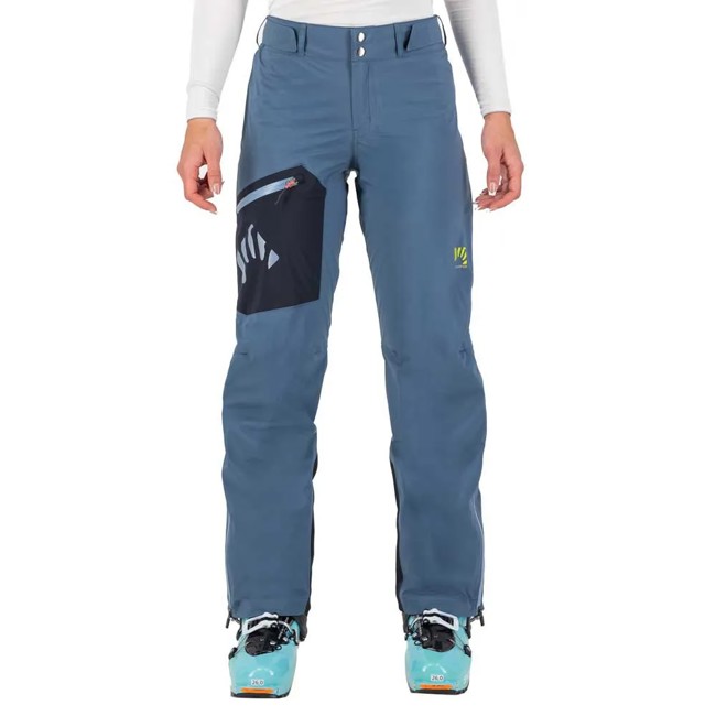 Karpos Valsesia Shell W Pant naisten hiihtokiipeilyhousut, valmistettu kolmikerroksisesta Pertex® Shield -kankaasta, vedenpitävä, hengittävä ja tuulenpitävä. Säädettävä vyötärö, vetoketjut sivuilla ja Cordura®-vahvike alareunassa.