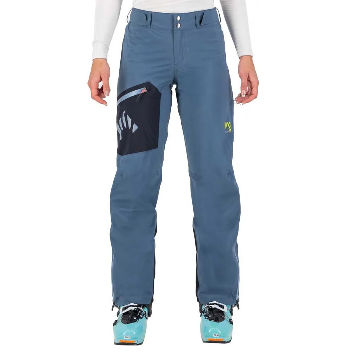 Karposin Valsesia Shell W Pant on tekninen asu, joka on suunniteltu hiihtokiipeilyyn. Valmistettu kolmikerroksisesta Pertex® Shield -kankaasta, ne tarjoavat erinomaisen suojan sääolosuhteita vastaan, koska ne ovat vedenpitäviä, tuulenpitäviä ja hengittäviä. Sen dynaaminen muotoilu mukautuu kehon liikkeisiin toiminnan aikana, kun taas säädettävä vyötärö vyölenkeillä ja tarranauhalla takaa täydellisen istuvuuden. Täyspitkät sivuvetoketjut, joissa on kaksinkertaiset liukusäätimet, helpottavat tuuletusta ja housujen pukemista, jopa saappaiden kanssa. Niissä on myös käytännöllinen vetoketjutasku jalan etuosassa ja Cordura®-vahvike alaosassa suojaamaan suksien reunoilla.