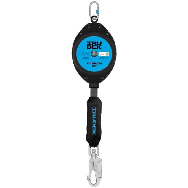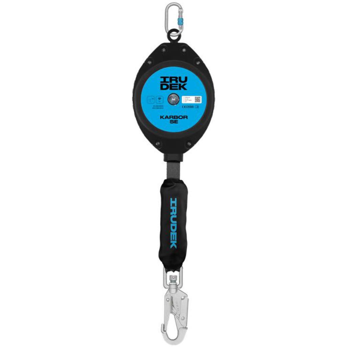 Irudekin Karbor H6 sisäänvedettävä putoamissuoja 25 mm teipillä ja 6 metrin pituinen. Siinä on keskipakovoimajarrumekanismi. Alemmassa kääntyvässä teräksisessä karabiinissa on pudotusosoitin.
