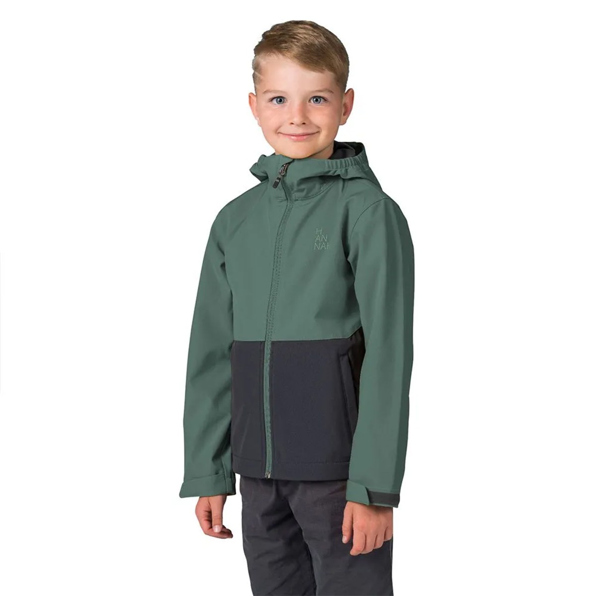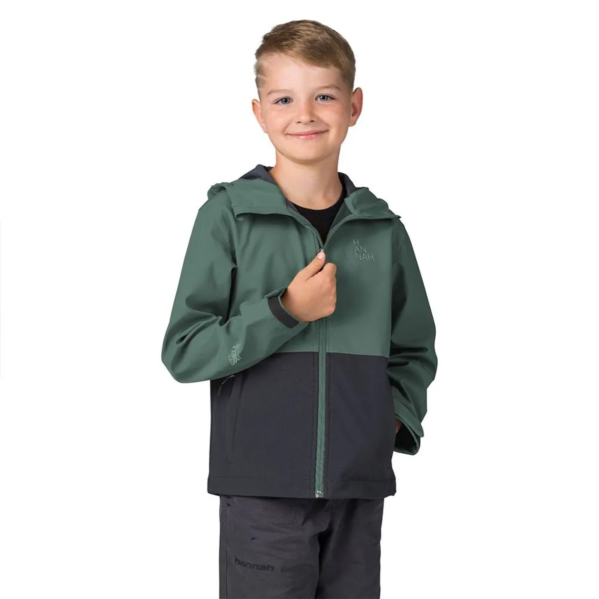 Lasten softshell-takki, joustava, vettä hylkivä ja hengittävä. Ihanteellinen retkeilyyn ja ulkoiluun. Huppu, säädettävät hihansuut ja heijastavat elementit lisäävät turvallisuutta.
