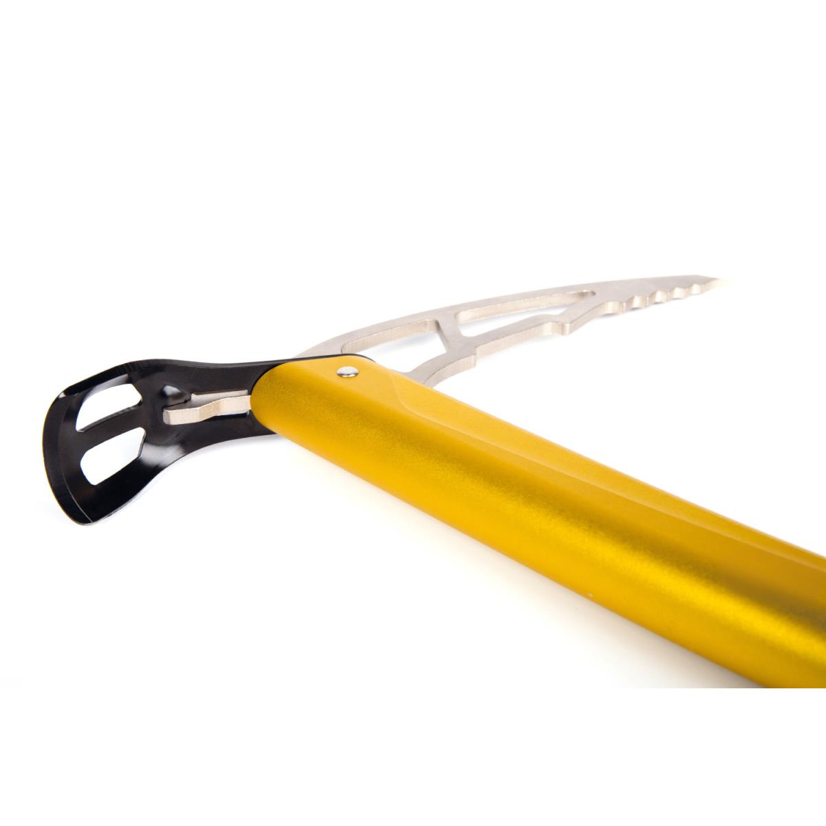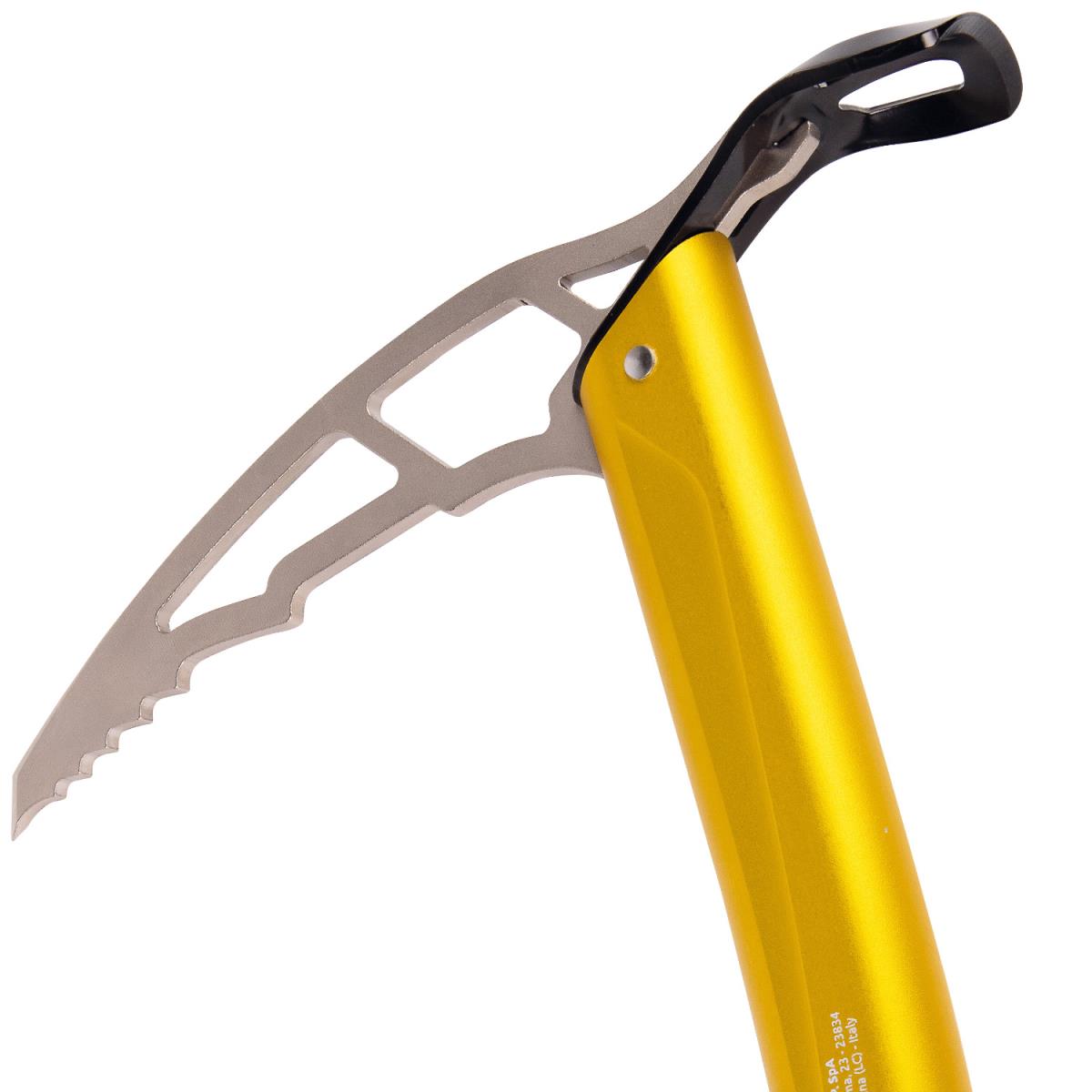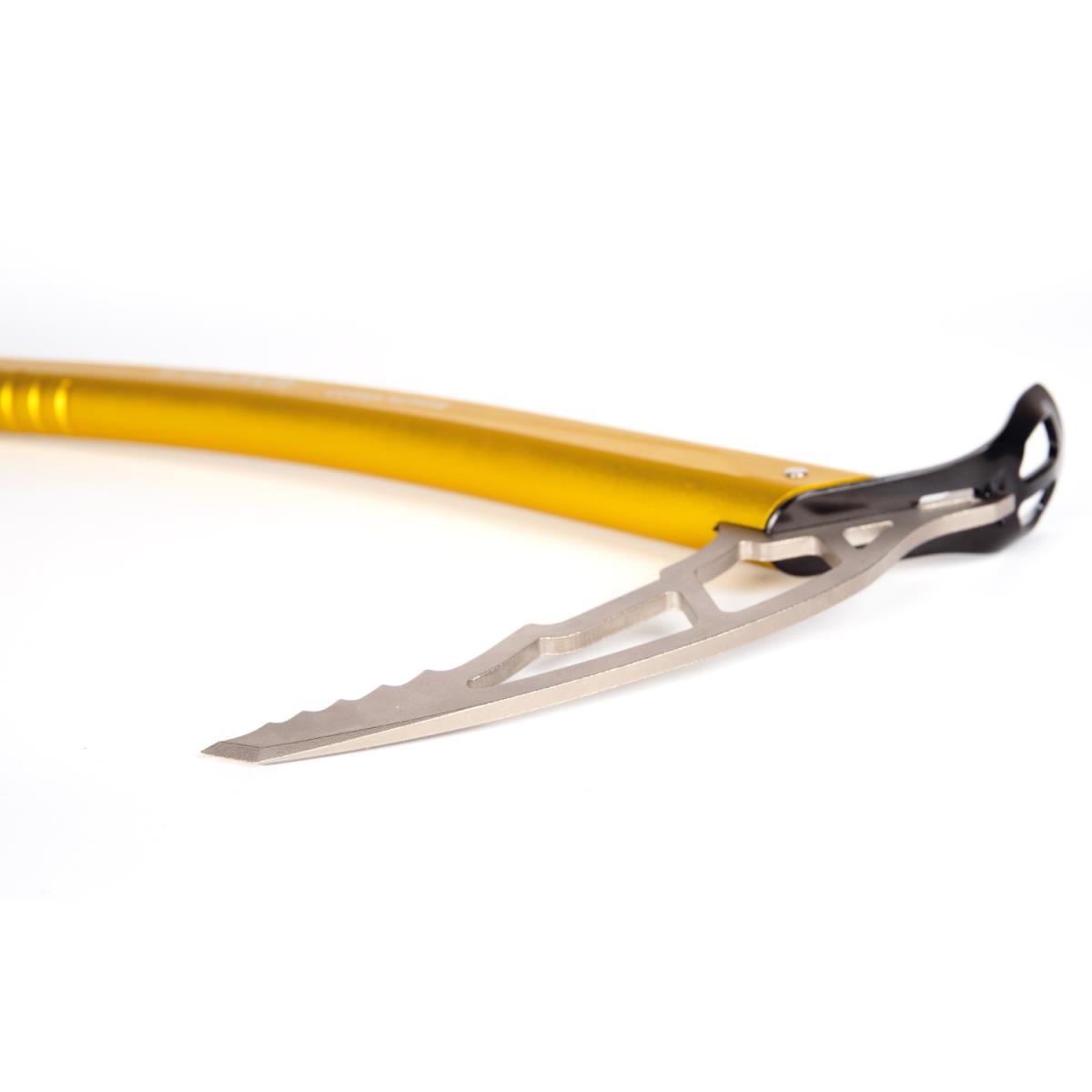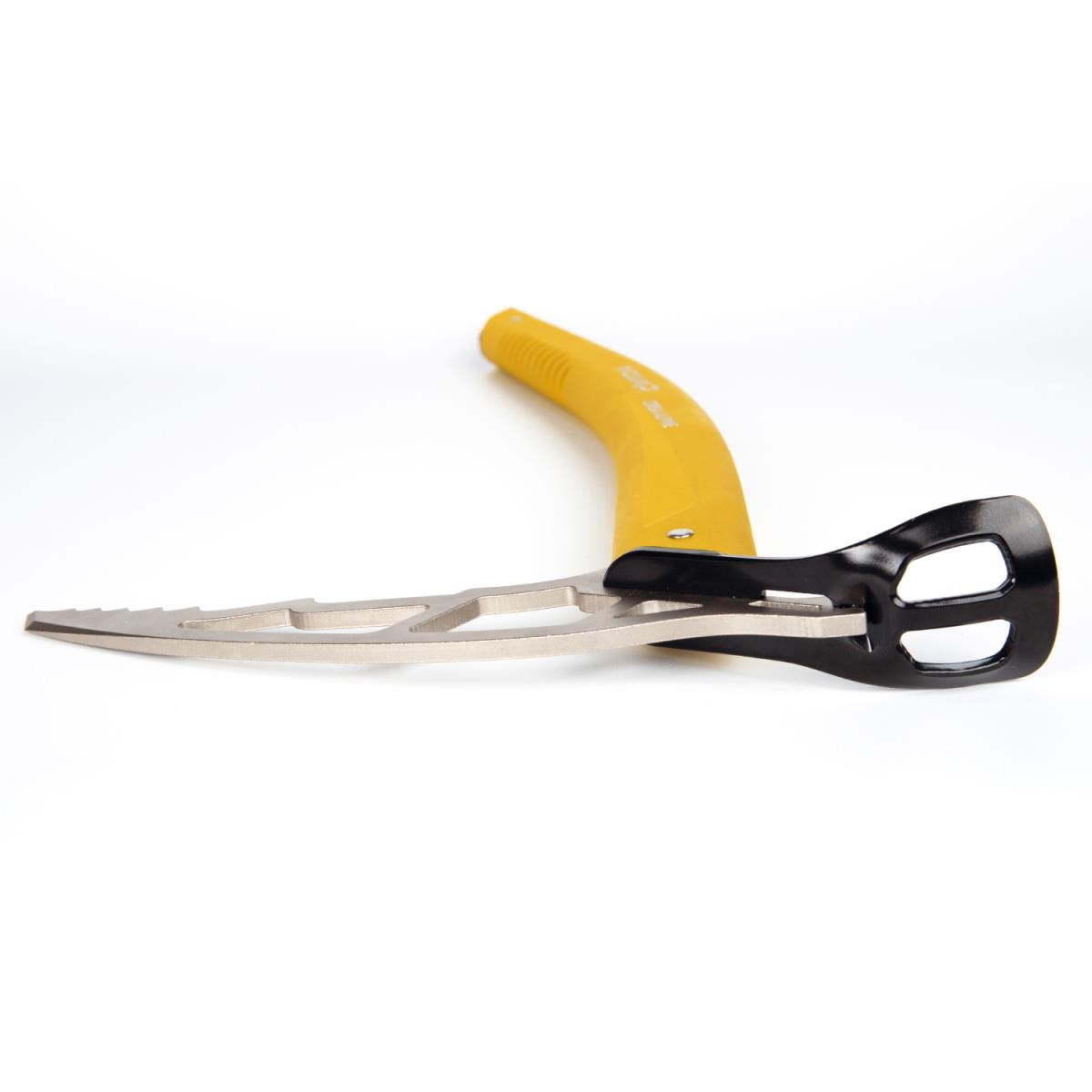 La courbure de la poignée, associée à la lame progressive à l’extrémité, optimise l’efficacité dans les pas plus raides sans réduire le soutien, qui est renforcé par la pointe minimaliste en acier. La technicité de l’outil peut être augmentée grâce au support Trigger Fast Lock (disponible séparément). La rainure intégrée dans la tête, entre la lame et le manche, permet de fixer la sangle Corsa (disponible séparément).